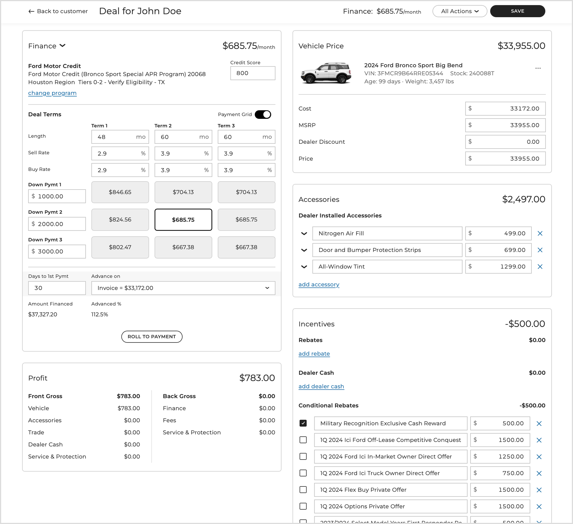 With the new transaction experience, you now have dedicated buttons to edit the deal (“Edit Deal”) and (“Send to DMS”).